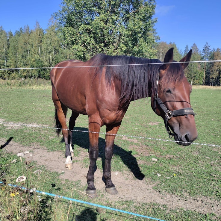 Jaloistaan terve, kurkku operoitu laserilla syyskuussa 2025. Hevonen on Ruotsin rekisterissä.